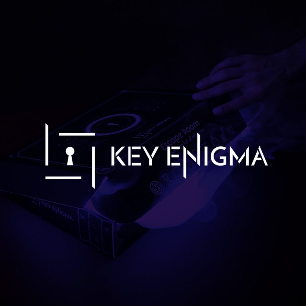 Key Enigma no solo propone resolver puzzles, sino manipularlos, abrirlos y descubrirlos como si fueran cajas de misterio. El logotipo se construye a partir de: